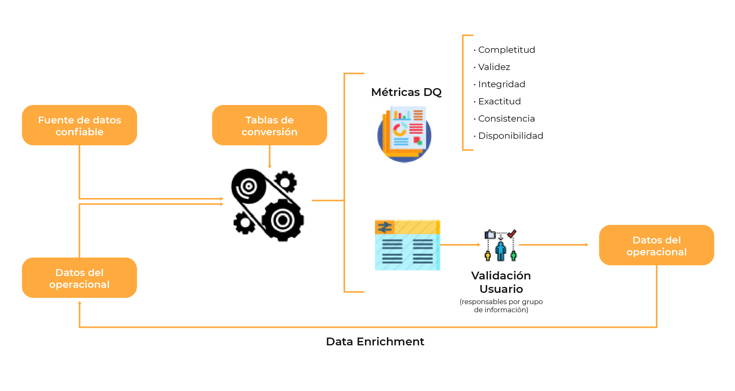 Modelo de Gobierno de Datos que permite el seguimiento de la calidad de la información para Bienes Inmuebles, así como el enriquecimiento de datos a través de la información de las Notas Simples. Este modelo permite incluir diferentes entidades de la organización y medir la calidad con diferentes ejes (temporal, por cliente, por departamento de gestión, etc.) e integra la interfaz de carga para enriquecer los sistemas operacionales impactados.
